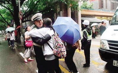“叔叔我可以抱抱你嗎?”昨天,重慶一位“考前小緊張”的女生走進(jìn)考場(chǎng)前,突然小跑來(lái)到執(zhí)勤民警小張面前,怯生生地“求鼓勵(lì)”。小張知道她可能需要一點(diǎn)鼓勵(lì),沒(méi)有猶豫,馬上給了她一個(gè)熊抱,“叔叔祝你考出理想的成績(jī)!”