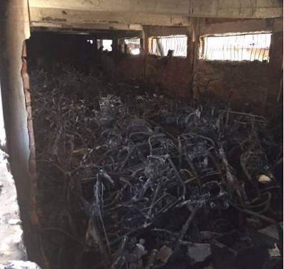 今天凌晨1點(diǎn)半左右,鄭州二七區(qū)新浦街5號(hào)院的電動(dòng)車(chē)棚突發(fā)火災(zāi),近百輛電動(dòng)車(chē)被燒成骨架。據(jù)目擊者稱(chēng),電動(dòng)車(chē)充電時(shí)爆炸引發(fā)火災(zāi)。小區(qū)居民稱(chēng),小區(qū)消防通道不暢,消防栓竟然沒(méi)有一滴水,耽誤了最佳撲救時(shí)間。