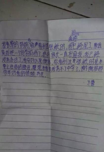 (湖南綏寧小學(xué)生跳樓身亡,遺書(shū)稱(chēng)遭同學(xué)家長(zhǎng)逼迫,一張疑似絕筆信的照片在網(wǎng)上流傳,內(nèi)容為一名學(xué)生向媽媽臨終告別,后面還附有多張醫(yī)院搶救照,遺書(shū)的作者是湖南綏寧縣長(zhǎng)鋪二小5年級(jí)的一名學(xué)生,目前已經(jīng)跳樓身亡。)