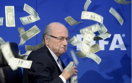 國(guó)際足聯(lián)召開新聞發(fā)布會(huì),宣布新主席選舉將在2016年2月26日舉辦,不過發(fā)布會(huì)發(fā)生一個(gè)插曲,喜劇演員李-尼爾森突然闖入,他向布拉特不斷揮舞鈔票,并且諷刺道,”韓國(guó)拿下2026年世界杯的錢夠了吧!“隨后他把錢全都扔在了布拉特的臉上,后者一臉驚慌。