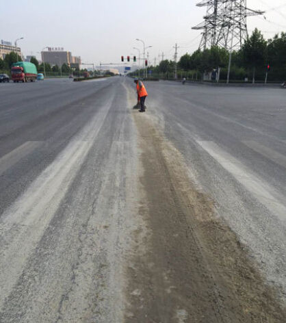 29日晚,西四環(huán)東半幅快車道上拋灑了一地的水泥混凝土,最寬處達2米多寬,厚度約有2指厚。經(jīng)過大車重車一夜的碾軋,30日上午,混凝土早已凝固在路面上,20多名環(huán)衛(wèi)工耗時3小時才將路面清理干凈。