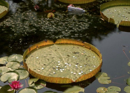 山東濟南大明湖景區(qū)北岸,有一處種植王蓮的水池,盛開的王蓮葉片直徑可達50厘米。但最近王蓮成了馬蜂窩,不少游客將它當成“許愿花”,拿硬幣投向葉片。有的硬幣落在葉面上,有的將葉片砸穿,碩大的葉子上布滿小洞。文明觀賞,轉(zhuǎn)發(fā)倡議!