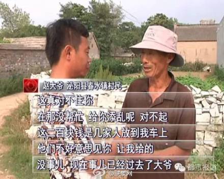 泌陽(yáng)哄搶蘋(píng)果事件后,村民們認(rèn)識(shí)到做錯(cuò)了事,陸續(xù)主動(dòng)退賠道歉,車主已收到2680元退賠款。趙大爺說(shuō),把蘋(píng)果拉回家后他的心一直揪著,特別是看電視后,總想著向車主賠禮道歉。道歉賠償后,他仍覺(jué)得過(guò)意不去,又向車主發(fā)出邀請(qǐng):以后開(kāi)車經(jīng)過(guò)我們村,就上我們家吃飯來(lái)!