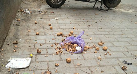8月26日,鄭州互助路某家屬院忽然天降一包核桃,險(xiǎn)些砸中買菜回來(lái)的王女士。接到王女士求助后,巡防隊(duì)員急忙上樓查看高空拋核桃的居民,沒(méi)有一家開(kāi)門說(shuō)明情況。據(jù)了解,該小區(qū)之前也有居民反映高空拋物現(xiàn)象。