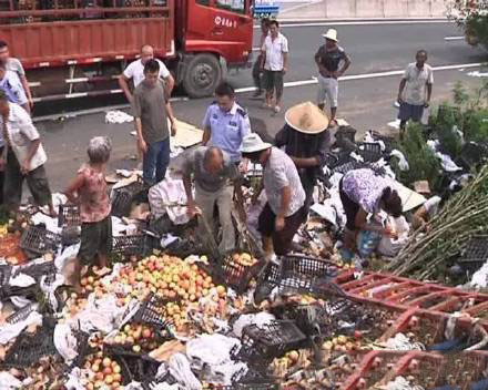 13、蘋(píng)果貨車翻車遭哄搶,村民道歉并退賠2680元