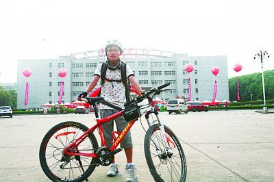 河南固始縣的18歲小伙李茂開學用三天時間獨自騎自行車,跋涉300公里到漢口學院報名上大學。從河南到湖北,雖中途曾嚴重缺水,車子出了毛病,手指被夾傷,但小伙子為了自己的堅持,硬是咬牙撐了下去。