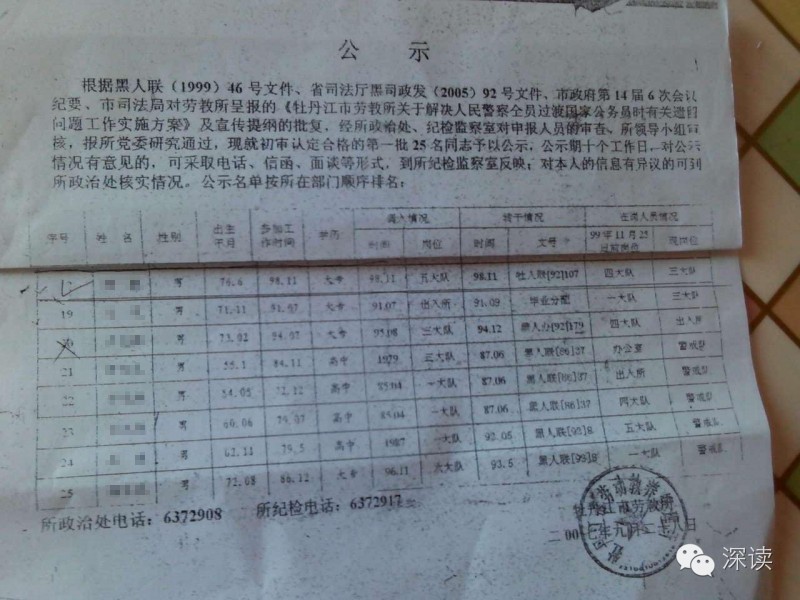 日前,有多名黑龍江省牡丹江市強(qiáng)制戒毒所(原勞教所)在職及退休干警通過爆料平臺向深讀爆料稱,該單位原副所長為了能讓兒子進(jìn)入勞教所工作,通過虛構(gòu)出生年月的手段造假,使其兒子順利進(jìn)入勞教所工作,并在入黨后被提拔成為單位的中層干部。