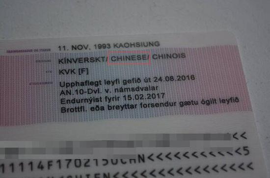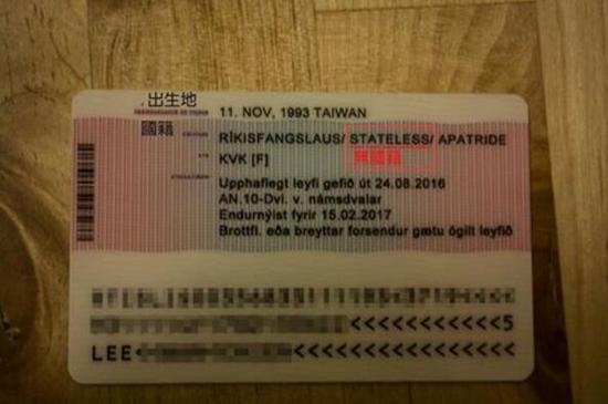 原標(biāo)題:臺(tái)灣女生不滿冰島居留證被列中國籍 結(jié)果被改為“無國籍”