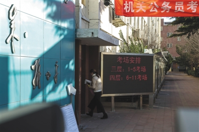 今年國考北京全市共設(shè)置了100個考點。昨日,記者來到北京林業(yè)大學(xué)第二教學(xué)樓的考點。11時許,考生結(jié)束了行政能力測試的考試離開考場。一名考生告訴記者,今年的考題“數(shù)量關(guān)系”部分難度不小,自己沒有答完?!拔业谝淮螀⒓訃?,也做過以前的考卷,但感覺今年還是比較難,數(shù)學(xué)題有點像奧數(shù),后面沒做完,有好多是蒙的?!边@位考生說。