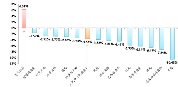 答:從數(shù)據(jù)看,人民幣在全球貨幣體系中仍表現(xiàn)出穩(wěn)定強(qiáng)勢(shì)貨幣特征。近期美元上漲較快,反映的是美國經(jīng)濟(jì)增長加快、通脹預(yù)期上升、美聯(lián)儲(chǔ)加息步伐可能明顯加快等美國國內(nèi)因素。而人民幣匯率對(duì)美元波動(dòng)有所加大,主要是特朗普當(dāng)選美國總統(tǒng)、美聯(lián)儲(chǔ)加息預(yù)期突然增強(qiáng)、英國“脫歐”、埃及鎊自由浮動(dòng)等外部因素驅(qū)動(dòng)。這些因素對(duì)世界各國而言都有些意外,資金回流美國推動(dòng)美元指數(shù)迅速上漲、美國三大股指再創(chuàng)新高,全球貨幣普遍對(duì)美元貶值,有的跌幅還比較大。下一步美元走勢(shì)存在不確定性,不排除市場預(yù)期修正引發(fā)美元回調(diào)的可能。