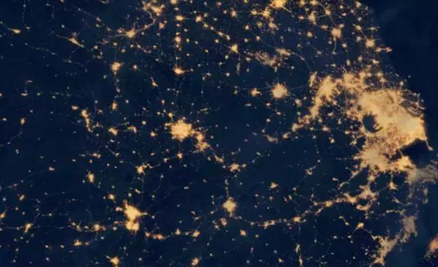 這份圖上,最閃亮的兩部分區(qū)域分別是珠三角和長三角,這也是中國目前最為成熟的兩大城市群,而作為傳統(tǒng)三大城市群之一的京津冀除了北京、天津之外,其他都呈散點排列,至于新晉的中原等城市群,規(guī)模上還不明顯。