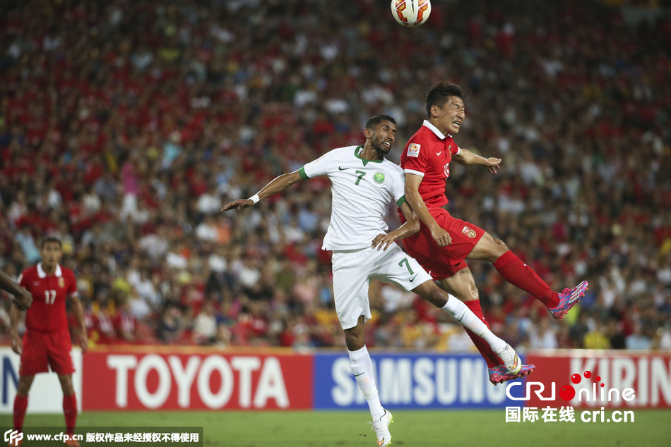 第21分鐘,中國隊前場反搶,于海和武磊打出快速反擊,于海強(qiáng)突橫傳門前,被沙特后衛(wèi)奧馬爾頭球解圍出底線。比賽進(jìn)行到25分鐘之后,沙特隊更多的利用腳下技術(shù)的優(yōu)勢打出小范圍配合,不過中國隊整體防守較為嚴(yán)密,并且通過積極地防守打出快速反擊威脅對方球門。