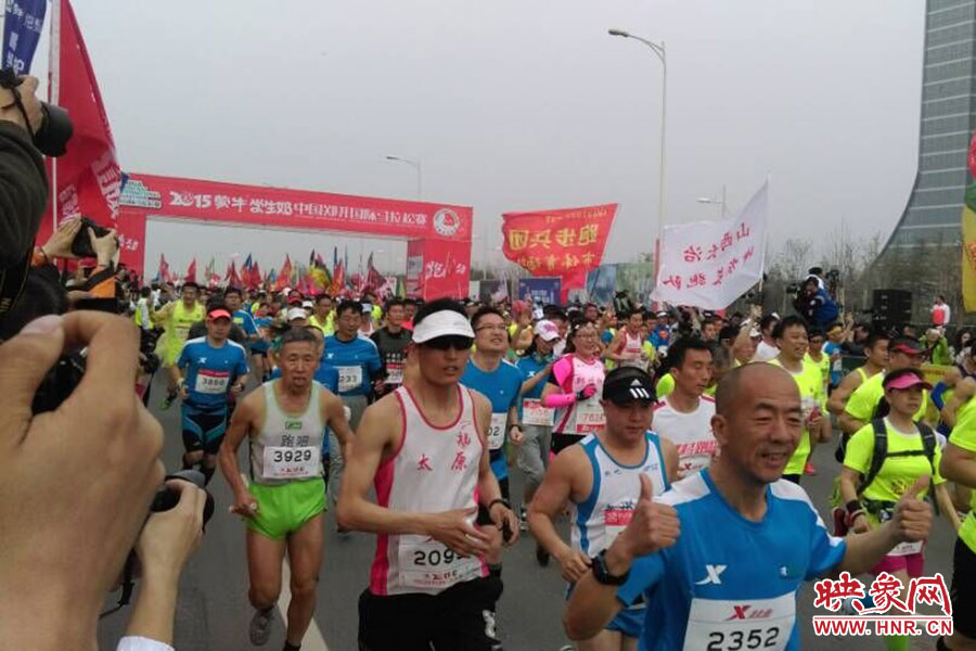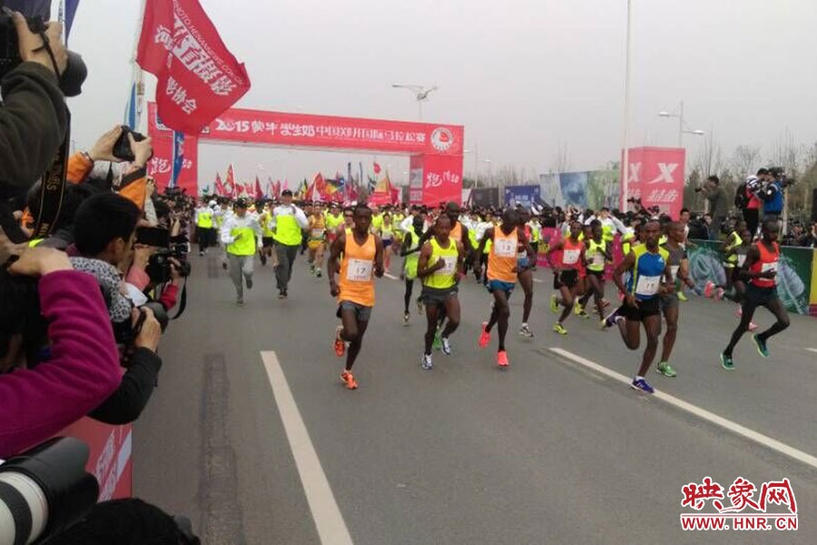 映象網(wǎng)訊(記者 駱瓊 阮海峰/文 閆善良 段晉哲/圖)3月29日上午8時(shí)30分,2015中國鄭開國際馬拉松賽在鄭東新區(qū)鳴槍開賽,來自29個(gè)國家和地區(qū)的4.9萬名運(yùn)動(dòng)員在春天里激情開跑,人數(shù)再創(chuàng)歷史新高。