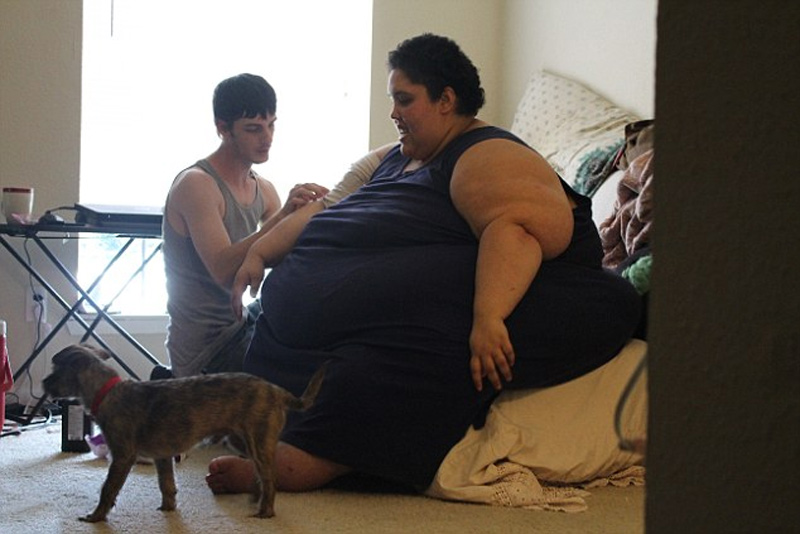 美國德克薩斯州休斯頓有個名叫貝蒂的女子體重高達(dá)600斤。造成這個年僅24歲女人如此肥胖的原因是其飲食習(xí)慣,她酷愛炸雞和烤肉醬。因體重過大,這位女子非但無法出門,就連上廁所、洗澡和吃飯都要丈夫Josh伺候。