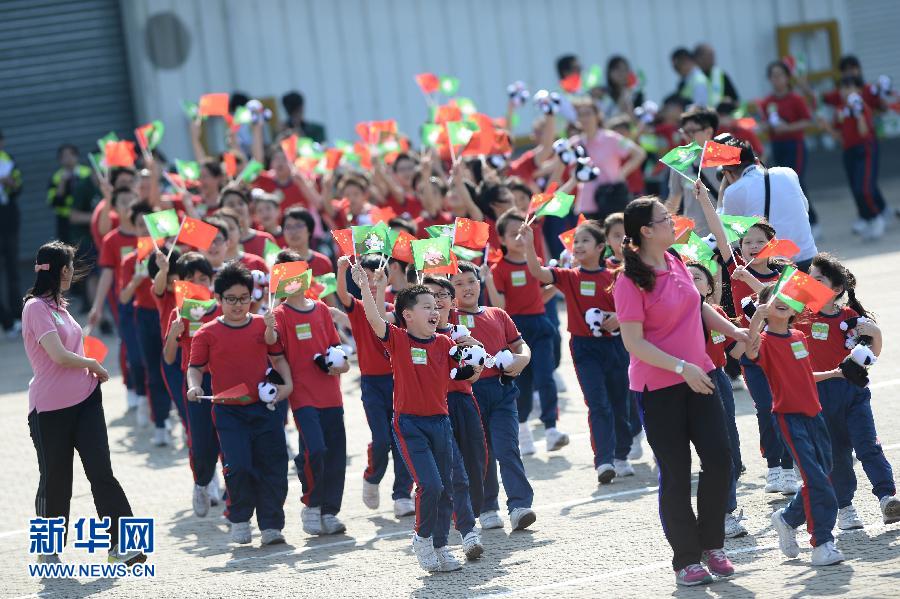4月30日,孩子們在澳門機場迎接大熊貓。當日16時許,中央政府贈送澳門的新一對大熊貓運抵澳門,澳門特區(qū)政府行政法務(wù)司司長陳海帆等官員及部分少年兒童在機場迎接。大熊貓經(jīng)檢疫人員檢查后在運輸籠中向前來接機的人們短暫亮相。目前它們身體狀況良好,隨后將前往金像農(nóng)場進行30天隔離檢疫。新華社記者張金加攝
