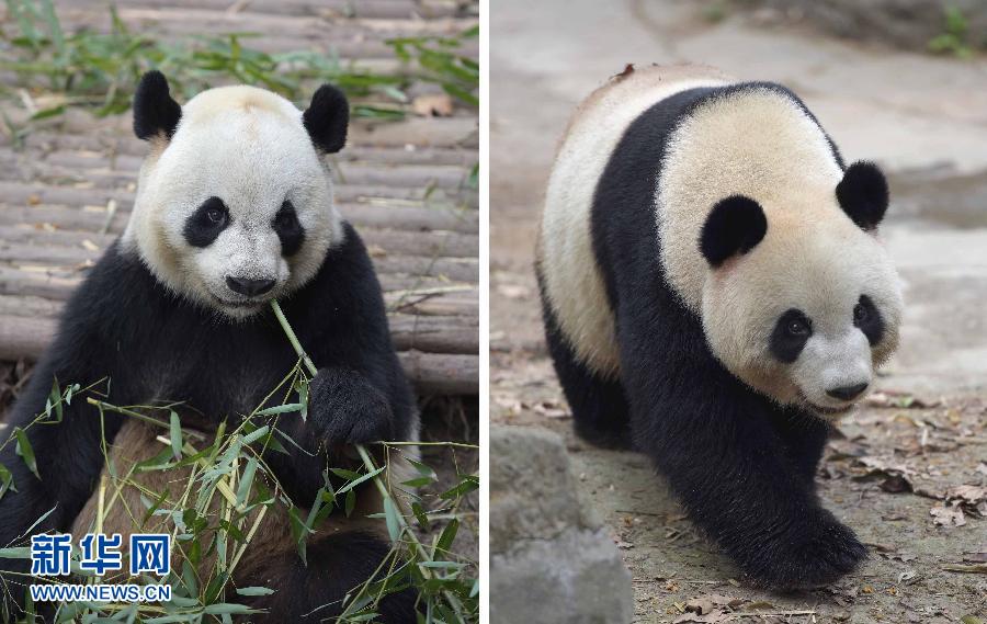 這是大熊貓“開開”(左)和“心心”(拼版照片,3月31日攝)。 新華社記者 薛玉斌攝