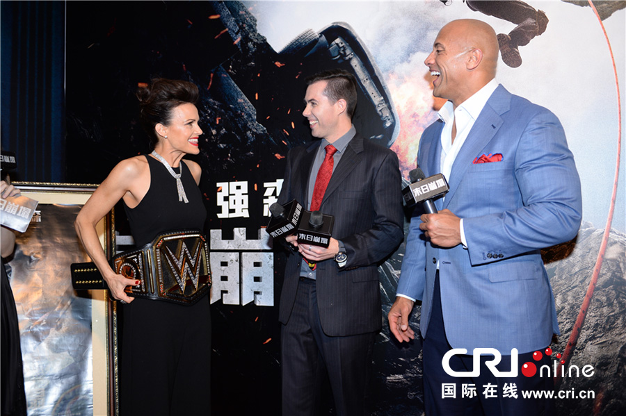 5月29日晚,由華納影業(yè)出品的2015年度巨型災(zāi)難大片《末日崩塌》在北京舉行了盛大的中國首映禮及紅毯活動,導(dǎo)演布拉德·佩頓攜主創(chuàng)“巨石”道恩·強森、卡拉·古吉諾一齊亮相紅毯,引發(fā)了粉絲和影迷的狂歡,也為即將到來的6月2日內(nèi)地公映預(yù)熱造勢。當(dāng)天紅毯,三位主創(chuàng)與中國的媒體和粉絲們進行了有趣的互動,擁有一身巨石般肌肉的強森更是頻頻與粉絲互動玩自拍,引爆紅毯最高潮。而紅毯結(jié)束后,影院內(nèi)還舉行了映前見面會,三位主創(chuàng)再次集結(jié)親臨影城現(xiàn)場,與場內(nèi)粉絲零距離交流互動,點爆粉絲熱情。