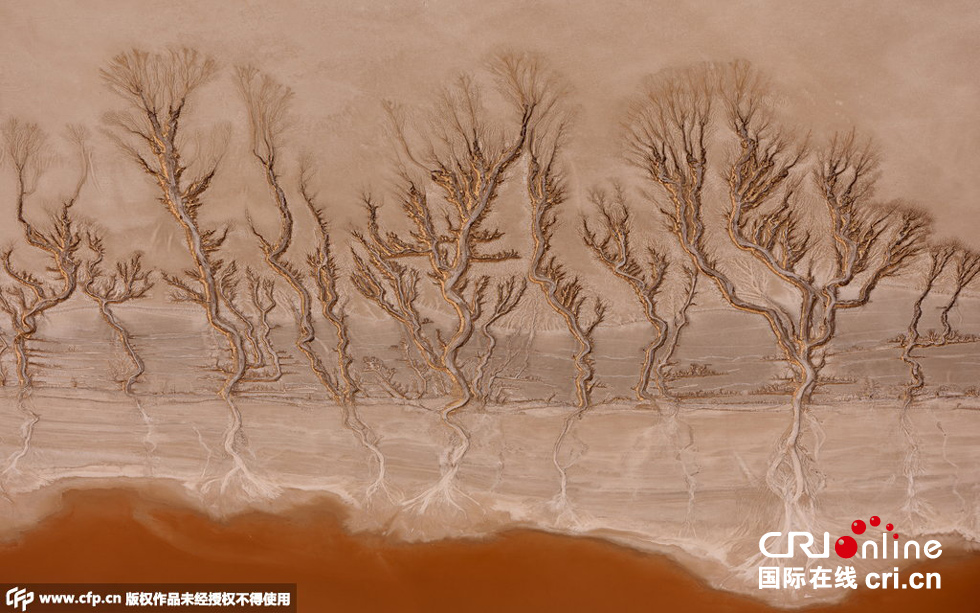 2015年6月5日消息,美國加州莫哈韋沙漠,這些照片看起來像是拍了森林中的一排樹,但事實(shí)上它們是干涸湖底的紋路。這種紋路足足綿延3英里。飛行教員Jassen Todorov在3000英尺的空中拍下了這組照片。圖片來源:CFP