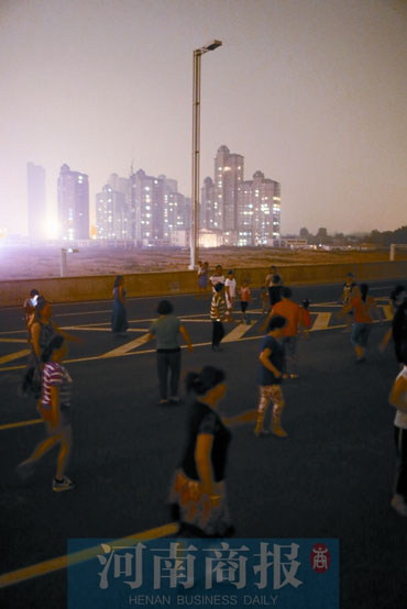 前天晚上7時30分,鄭州市南三環(huán)與京廣路交叉口向南500米路西,幾名市民沿著高架橋匝道向二層走去。高架橋二層橋面西側(cè),人們?nèi)宄扇海笕藗冞呑哌吜奶?,小孩兒則在車道上嬉笑玩耍。東側(cè),一名女士大步快速地向北走,“不刮風(fēng)不下雨,沒事兒就來這鍛煉。”此外,還有30多名市民正在跳廣場舞。