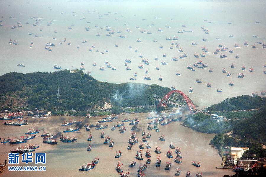 9月16日,浙江省舟山市沈家門漁港的漁船出港經(jīng)過朱家尖大橋開赴漁場。當日,為期3個半月的東海伏季休漁結(jié)束,眾多漁船劈波斬浪,開往漁場。 新華社發(fā)(華志波 攝)