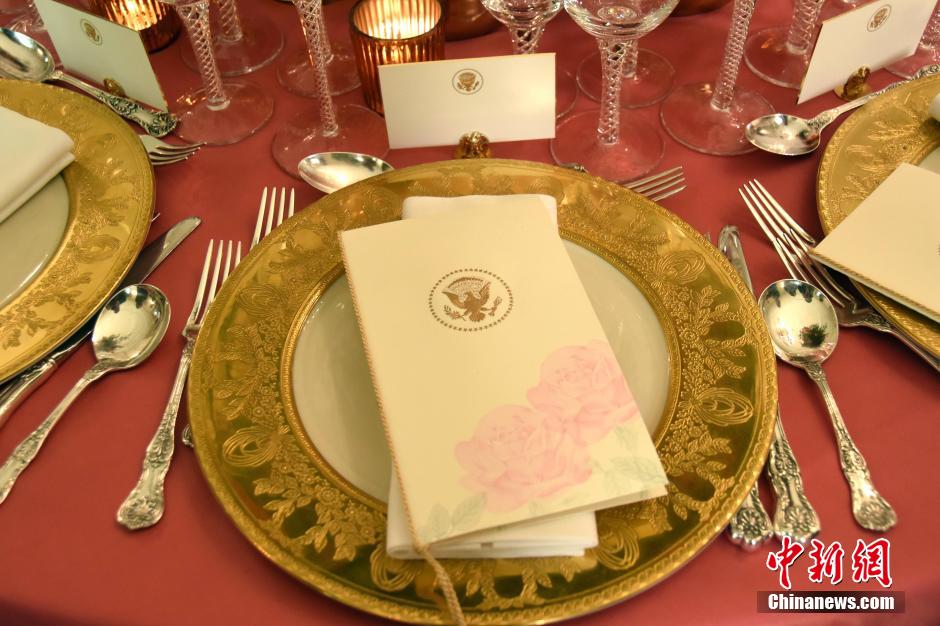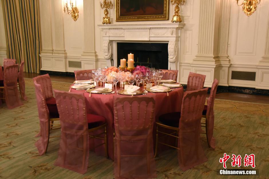 白宮餐桌布置。中新社記者 刁海洋攝