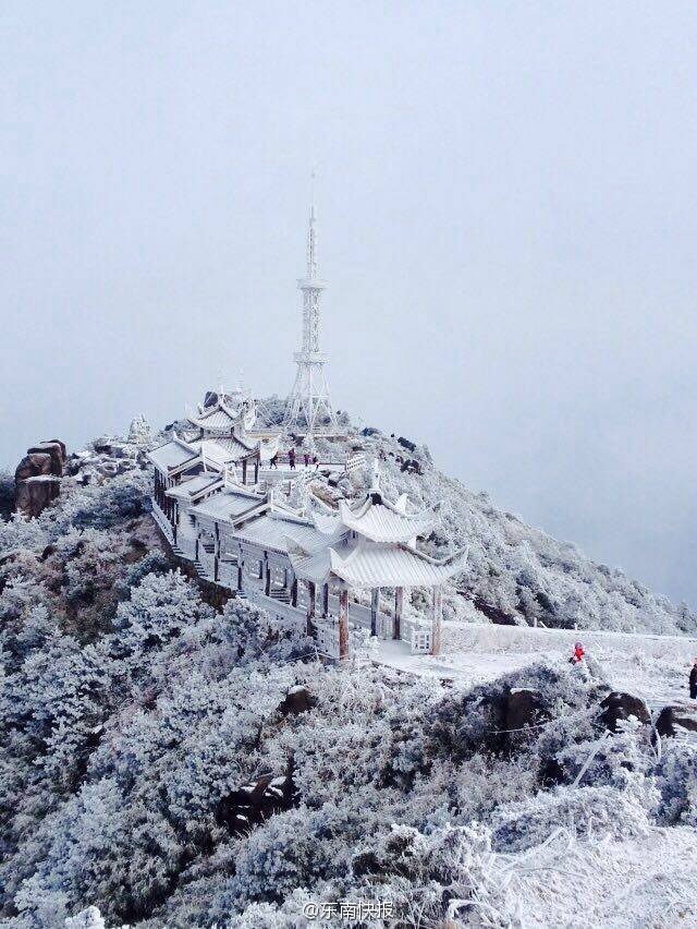 據(jù)網(wǎng)友@中國氣象愛好者 po出一張被冰封的福建九仙山測風(fēng)塔的圖片,雖然美的上天,清理起來恐怕非常麻煩。網(wǎng)友大呼: 冰封王座、 九層妖塔、 至尊冰殿,誰快坐上去。另據(jù)東南快報微博也曬出九仙山美圖:霧凇下的九仙山,太配得起她的名字!山上今天達(dá)到了-12℃!