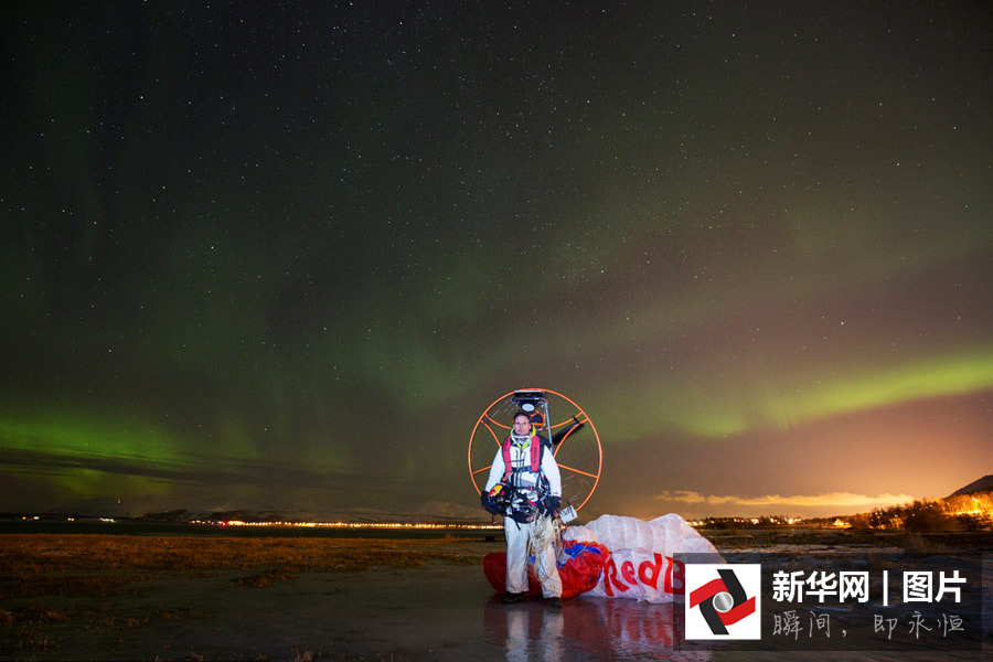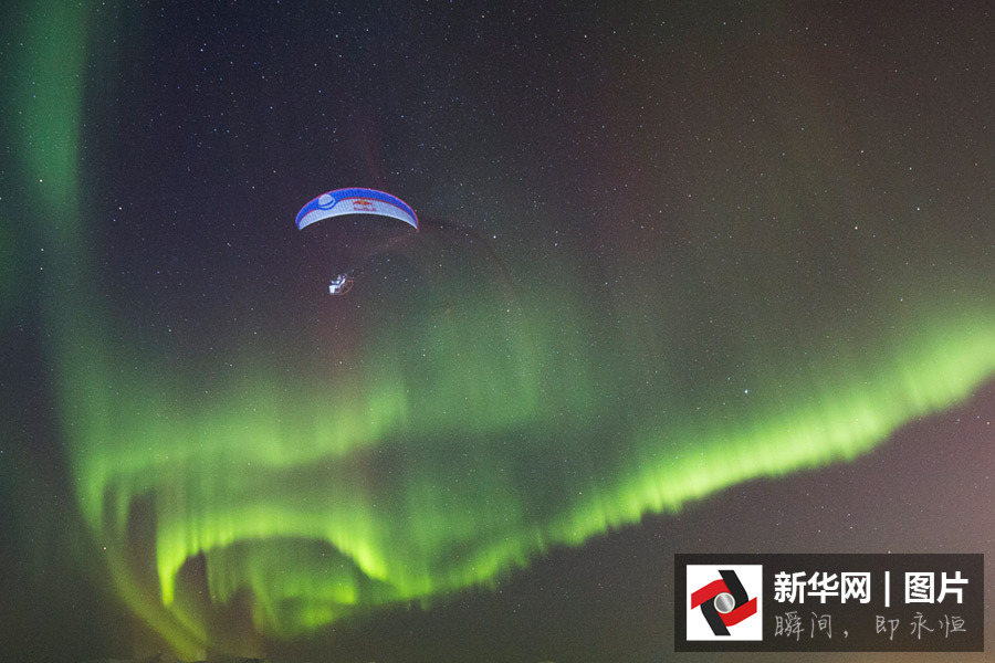 滑翔傘運(yùn)動(dòng)員Horacio Llorens在挪威終于完成了一生的夙愿“與極光跳舞”,畫(huà)面非常震撼。圖片來(lái)源:視覺(jué)中國(guó)