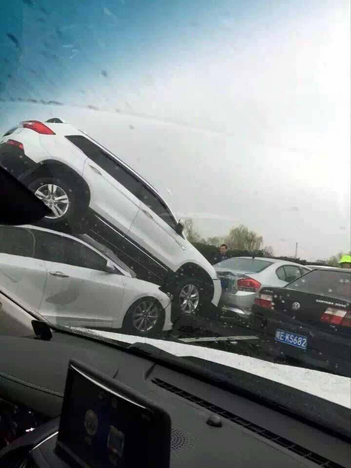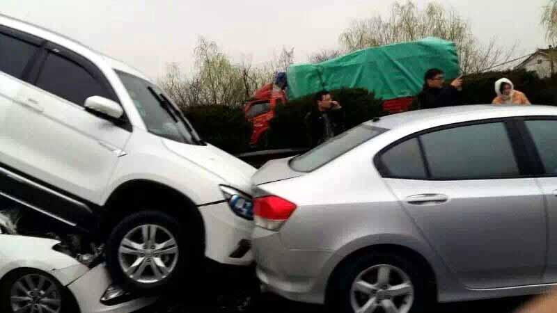 3月8日早上,受寒潮影響,南京雨水不停,寧馬高速南京方向的板橋附近,發(fā)生九車連環(huán)相撞事故,其中一輛SUV被后面追尾的轎車完全頂起,造成道路擁堵。目前,事故原因交警仍在調(diào)查中。