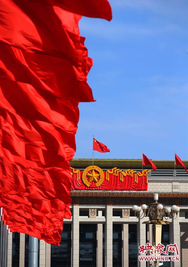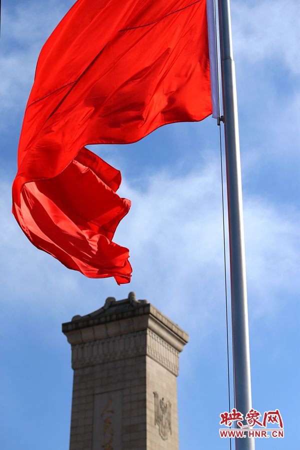 人民英雄紀念碑與紅旗遙相呼應 段晉哲/圖