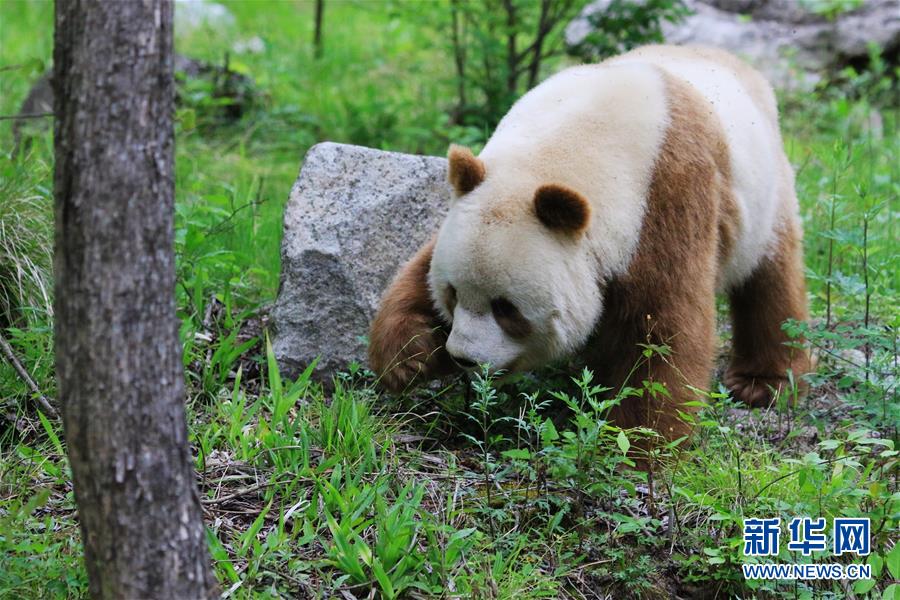野化培訓(xùn)已逐漸改變大熊貓?jiān)瓉碓趫@中飼養(yǎng)的生活狀態(tài),據(jù)介紹,目前有資料記載的已經(jīng)發(fā)現(xiàn)的棕色大熊貓有8只。 新華社發(fā) 梁啟慧 攝 圖片來源:新華網(wǎng)