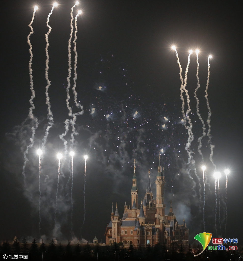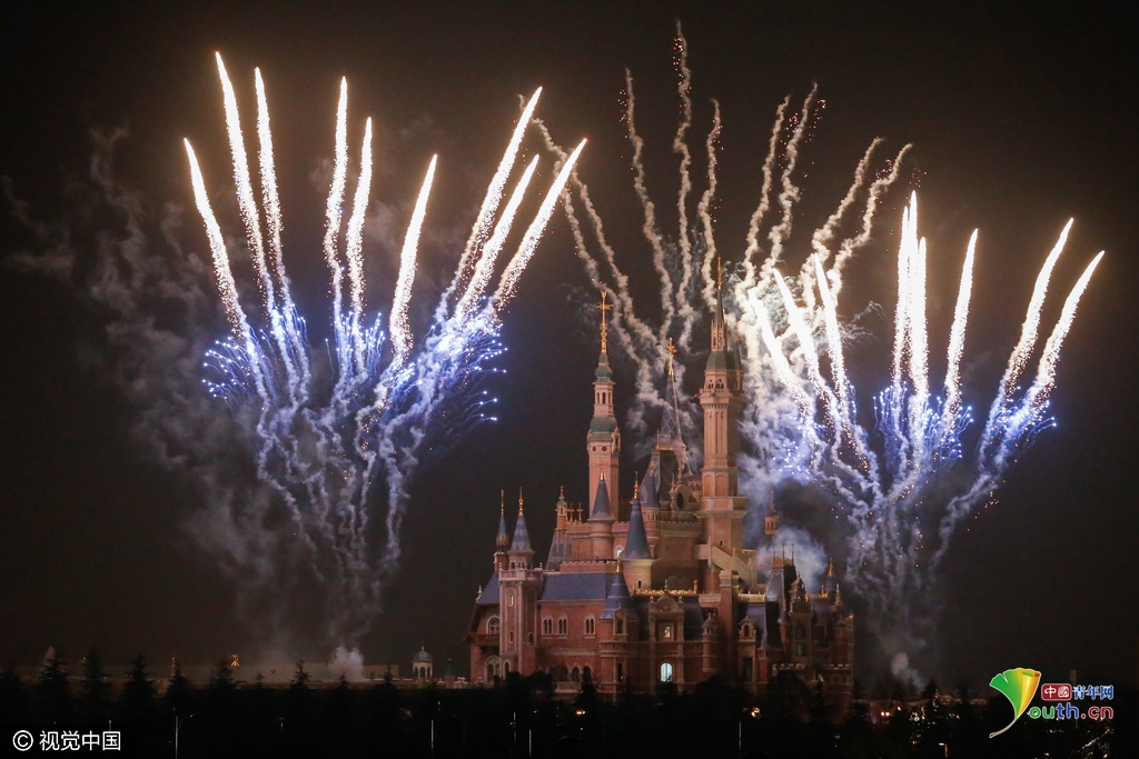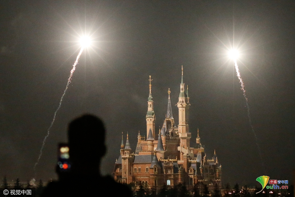 2016年3月28日晚,上海迪士尼樂(lè)園進(jìn)行了第一次煙花試放。晚上9時(shí)許,兩道明亮的煙火在人們的歡呼中劃破天際。在隨后的27分鐘內(nèi),10余組姿態(tài)各異的煙火在空中依次綻放,萬(wàn)千煙花“噴薄”而出,迪士尼城堡在煙火的照射下清晰可見(jiàn)。