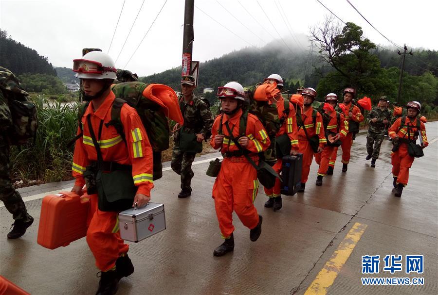 5月8日,由于當?shù)夭糠值缆诽?,武警水電二總隊六支隊官兵徒步馳援福建泰寧山體滑坡現(xiàn)場。