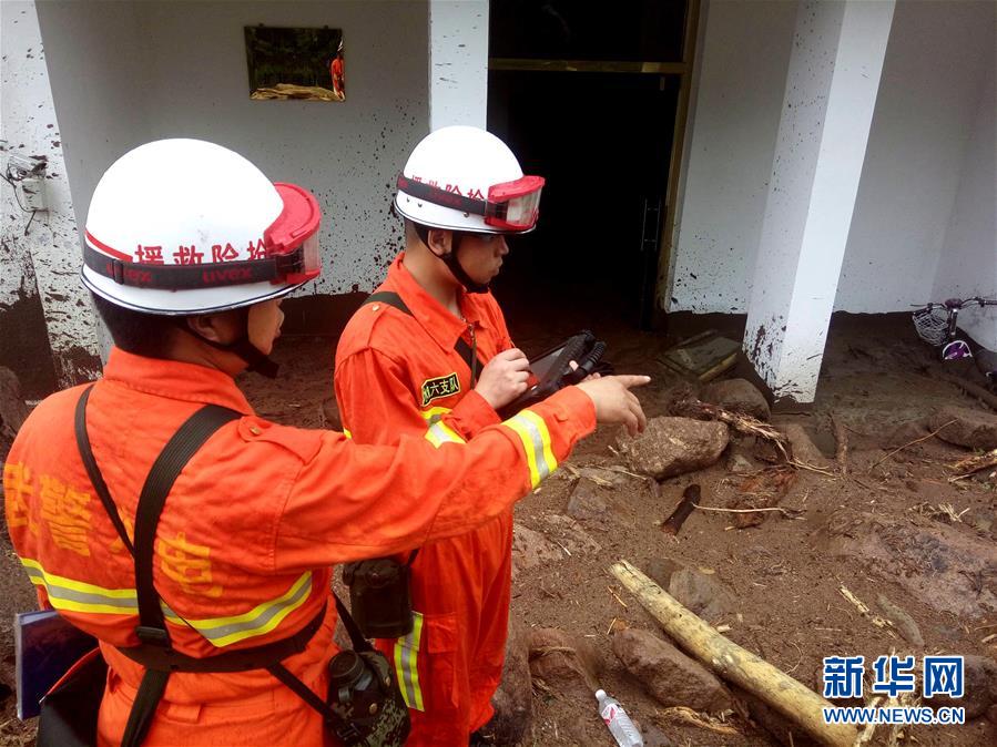 5月8日,在福建泰寧山體滑坡救援現(xiàn)場,武警水電二總隊六支隊官兵利用“雷達生命探測儀”對任務區(qū)進行搜救(手機拍攝)。