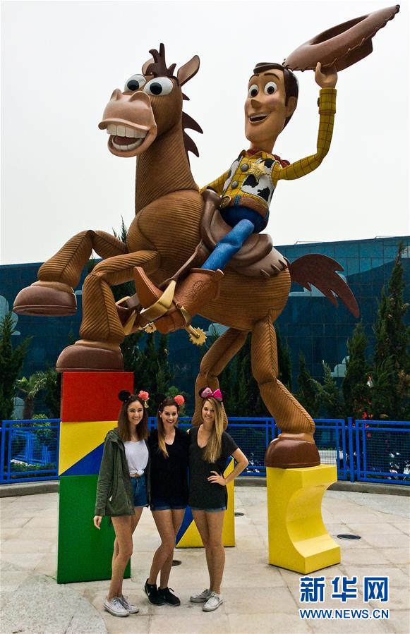 5月15日,參與內(nèi)部測(cè)試的游客在上海迪士尼玩具總動(dòng)員酒店的廣場(chǎng)前留影。當(dāng)日,上海迪士尼主題酒店之——玩具總動(dòng)員酒店大堂、廣場(chǎng)、餐廳、度假區(qū)短駁車(chē)等區(qū)域及設(shè)施開(kāi)始內(nèi)部測(cè)試。這家共有800個(gè)房間的主題酒店將于6月中旬正式迎客。新華社發(fā)(鈕一新 攝)