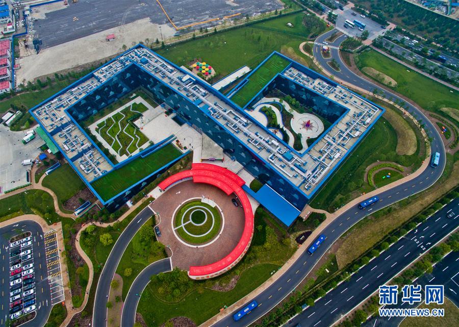 5月15日從空中俯瞰上海迪士尼玩具總動(dòng)員酒店。當(dāng)日,上海迪士尼主題酒店之——玩具總動(dòng)員酒店大堂、廣場(chǎng)、餐廳、度假區(qū)短駁車(chē)等區(qū)域及設(shè)施開(kāi)始內(nèi)部測(cè)試。這家共有800個(gè)房間的主題酒店將于6月中旬正式迎客。新華社發(fā)(鈕一新 攝)