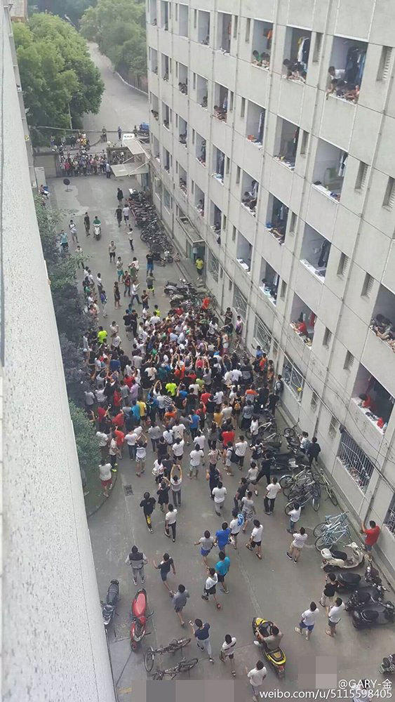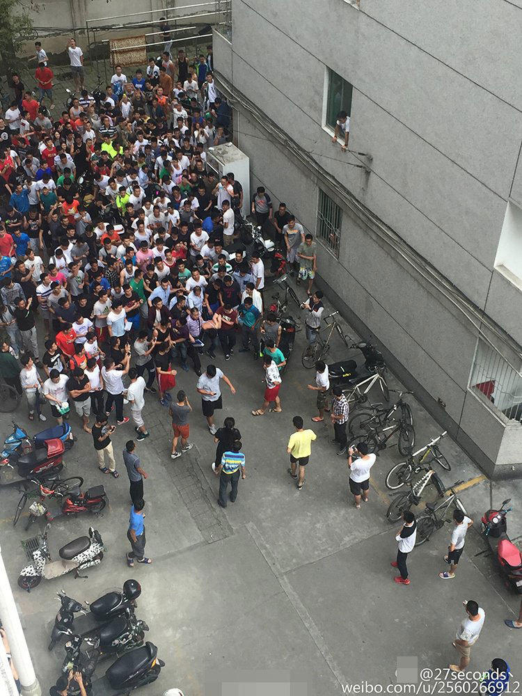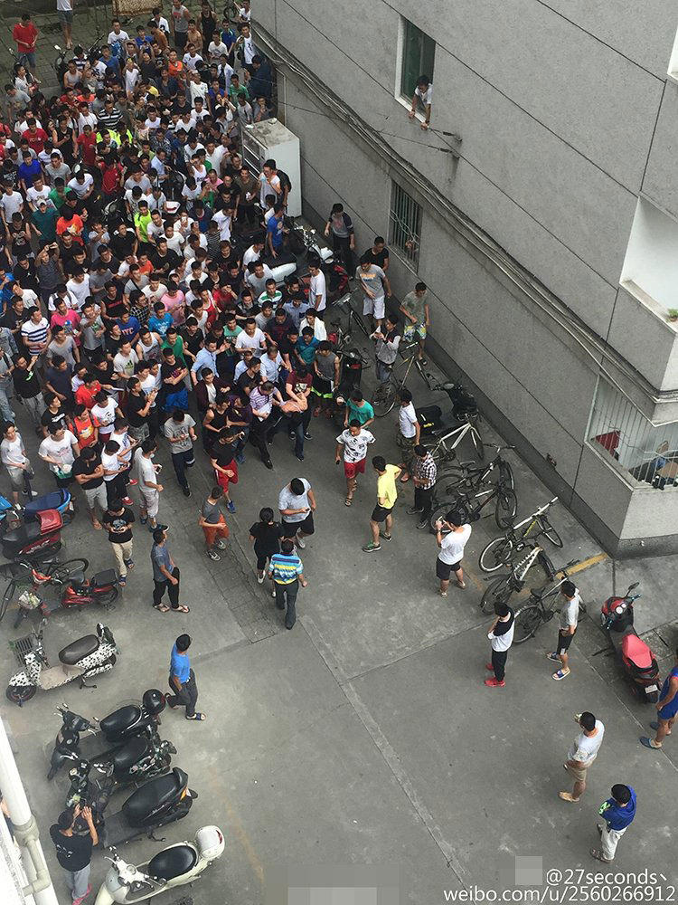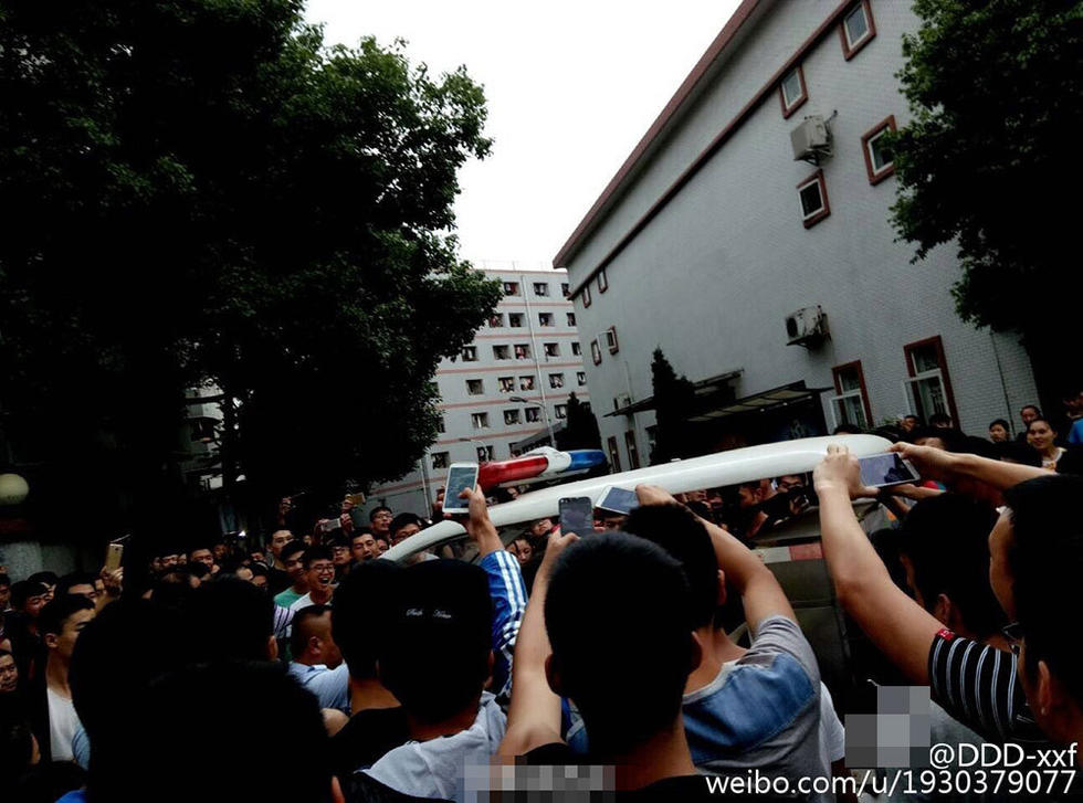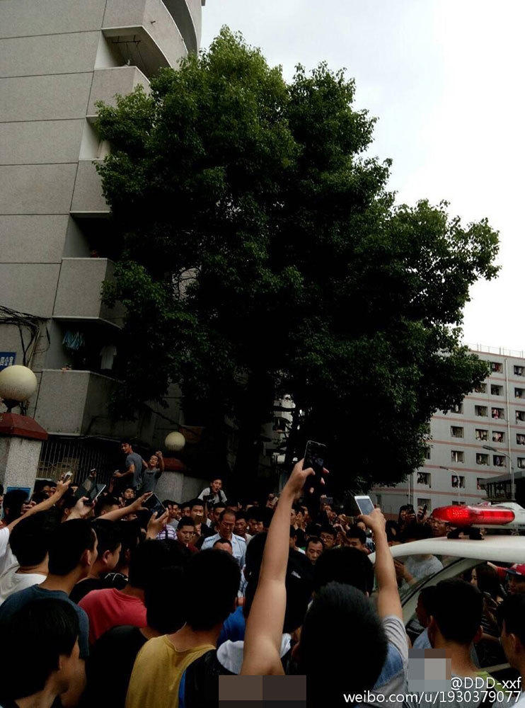 在小偷被攔下后,現(xiàn)場(chǎng)的喊聲驚動(dòng)了更多路過(guò)的學(xué)生,不到半分鐘時(shí)間,兩棟樓內(nèi)的男生迅速跑下樓,現(xiàn)場(chǎng)近百名學(xué)生將小偷圍得水泄不通。