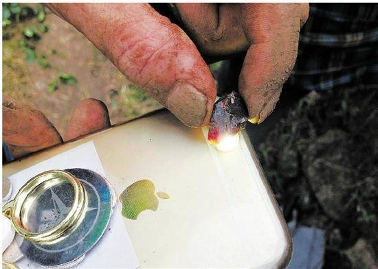 記者現(xiàn)場看到,挖出來的石頭,之所以被稱作“紅寶石”,是因?yàn)槠浔砻婵慈ルm然灰暗無光,但在燈光照射下,會呈現(xiàn)暖暖的紅色,而且品質(zhì)越好,通透性越高,的確有些迷人。石頭到底是什么成份?怎么形成的?真的很值錢嗎?磐安縣國土部門已經(jīng)邀請了省里的專家今天到現(xiàn)場鑒定,記者屆時也將一同前往。