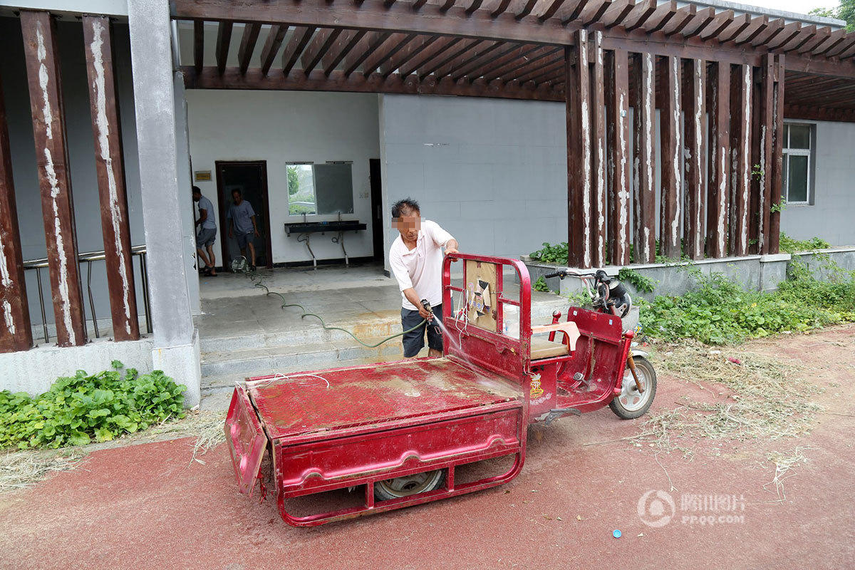 對(duì)此,鄭州高新區(qū)市政園林管理局相關(guān)負(fù)責(zé)人稱,雖西三環(huán)廊道建成3年了,但一直未移交給他們。前不久,施工方剛對(duì)其進(jìn)行了移交,但因附近的城中村拆遷,公廁一直使用臨時(shí)電,因電壓不穩(wěn),才一直未對(duì)外開放?!斑@幾天,我們?cè)俸凸╇姽緶贤ㄒ幌?,?zhēng)取盡快通上正式電,恢復(fù)公廁正常使用?!痹撠?fù)責(zé)人說。圖為幾名工人在用廁所里的水洗車。