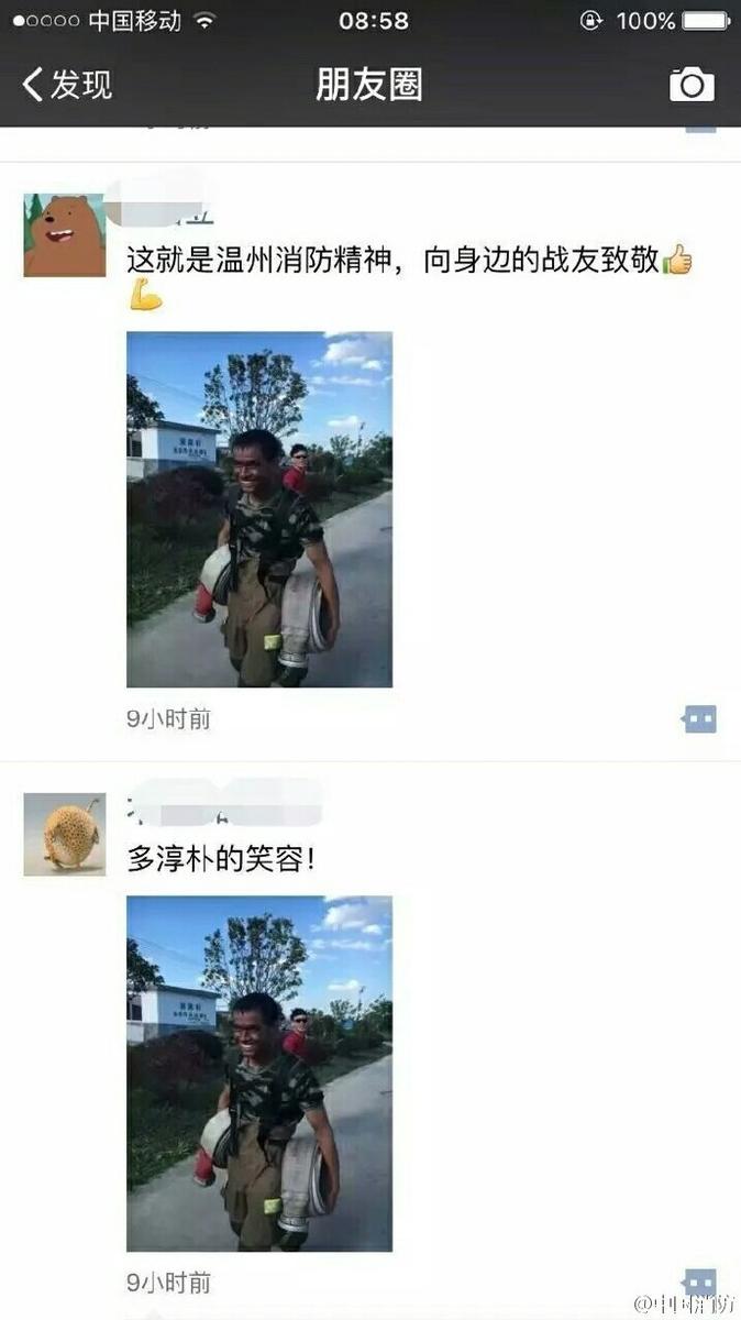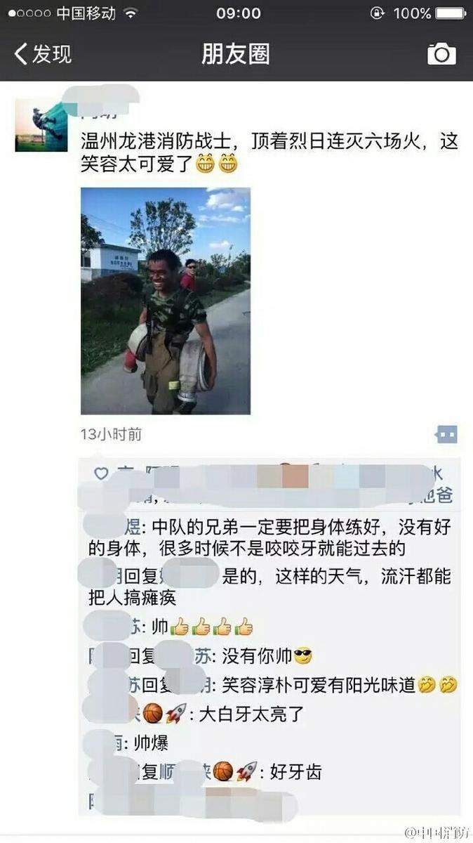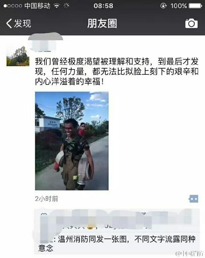 這是溫州龍港消防戰(zhàn)士成功處置6起火災(zāi)凱旋后,被抓拍到的一張照片,照片中樸實的笑容,最美的笑容,也是最美的瞬間。