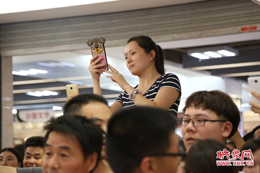 現(xiàn)場(chǎng)的熱心讀者為看六小齡童老師一眼,爬上了同伴的肩膀。
