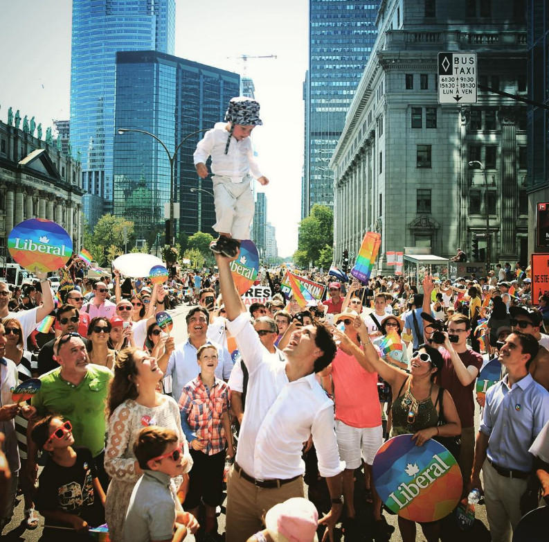 如今舊照被翻出,特魯多突然一下憑著運動能力成為“網(wǎng)紅”,掀起了一股特魯多熱潮。特魯多的運動能力還能從曬娃這件事上看出來。一般領導人曬娃就是雙手把孩子抱在懷里,特魯多曬娃是用超人出場的姿勢將兒子哈登單手托起,看起來帥氣逼人。
