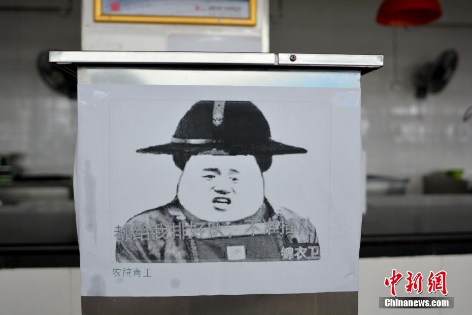 近日,四川農業(yè)大學食堂的“魔性”表情包告示牌在網絡走紅。告示牌上除了夸張的“魔性”圖案,還配有“吃完盤中餐,不做剩男剩女”、“敢在食堂撒野”、“默默吃著飯”等文字。四川農業(yè)大學工作人員介紹,這組魔性表情包告示牌由該校農學院同學們自發(fā)創(chuàng)作張貼,目的是為了讓同學們不要浪費糧食,注意排隊。 四川農業(yè)大學供