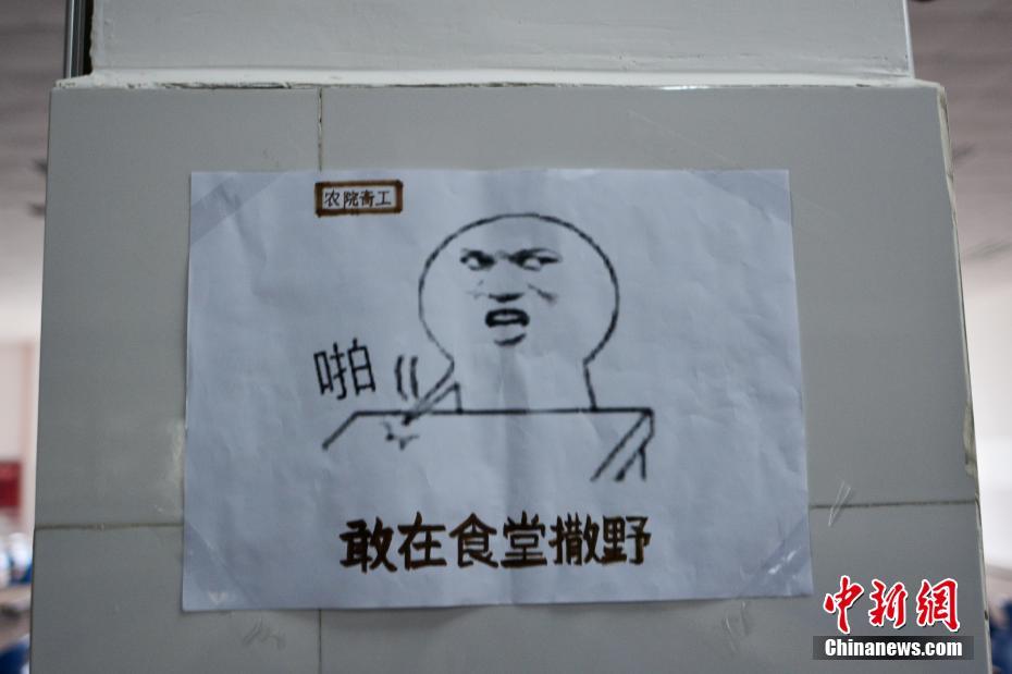 “魔性”表情包告示牌在四川農業(yè)大學食堂隨處可見。 四川農業(yè)大學供圖