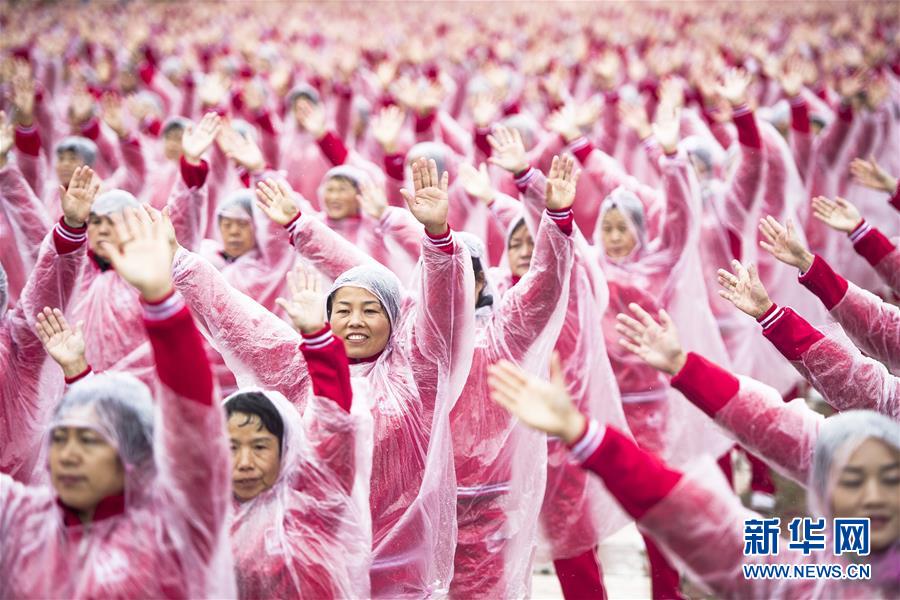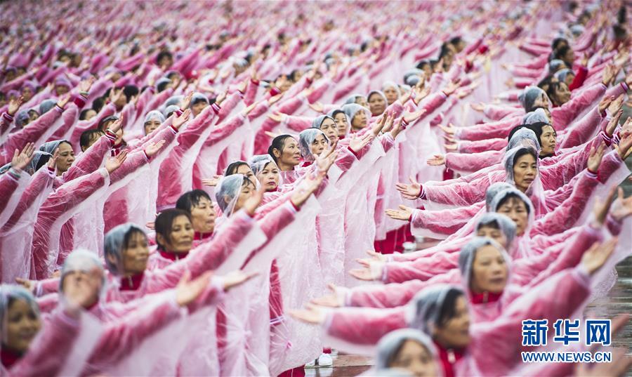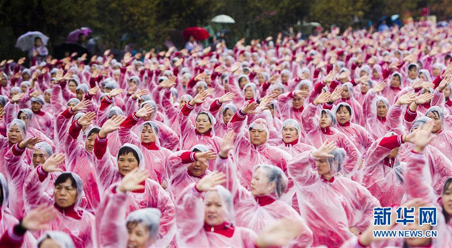11月7日,在武漢黃陂云霧山,廣場舞愛好者一同起舞。當(dāng)日上午,在天津、北京、上海、武漢、濟(jì)南等14個(gè)城市的不同場地上,50085人共同起舞,創(chuàng)下新的最大規(guī)模排舞(多場地)吉尼斯世界紀(jì)錄。新華社記者肖藝九攝
