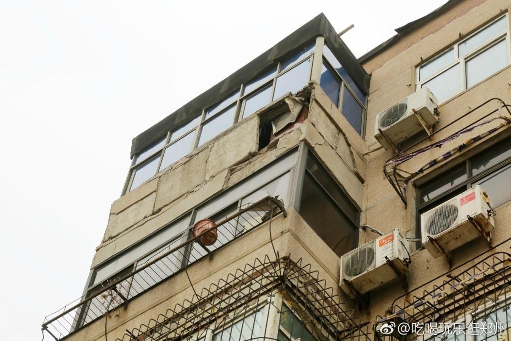 2017年3月12日,鄭州遭遇5級(jí)以上大風(fēng)襲擊,只聽(tīng)“咚”“咚”幾聲,紅專(zhuān)路附近一棟居民樓的陽(yáng)臺(tái)因年久失修,發(fā)生大面積的倒塌。