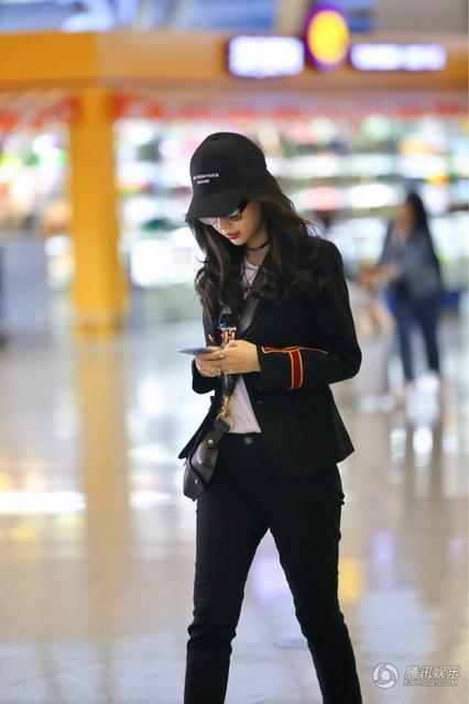 騰訊娛樂(lè)訊 23日下午,Angelababy現(xiàn)身上海機(jī)場(chǎng),一身紅黑拼色西裝讓Baby看起來(lái)十分帥氣有型。