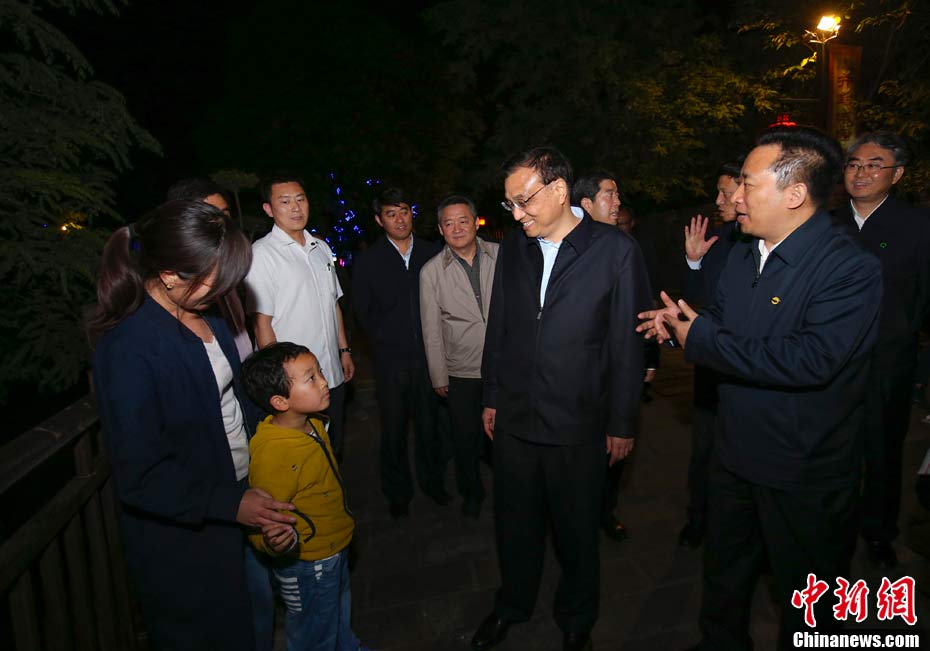 5月8日至9日,中共中央政治局常委、國務(wù)院總理李克強在河南省委書記謝伏瞻、省長陳潤兒陪同下,在開封、新鄉(xiāng)、鄭州考察。圖為5月8日晚,李克強在夜色中登上開封城墻,總理和市民們熱情交談,還饒有興趣走進(jìn)幾家文創(chuàng)小店。中新社記者 劉震 攝