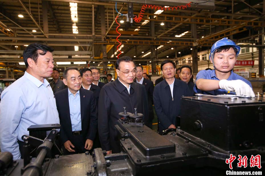 5月8日至9日,中共中央政治局常委、國務(wù)院總理李克強在河南省委書記謝伏瞻、省長陳潤兒陪同下,在開封、新鄉(xiāng)、鄭州考察。圖為5月8日,李克強在開封中聯(lián)重科生產(chǎn)車間考察。中新社記者 劉震 攝