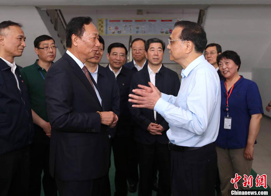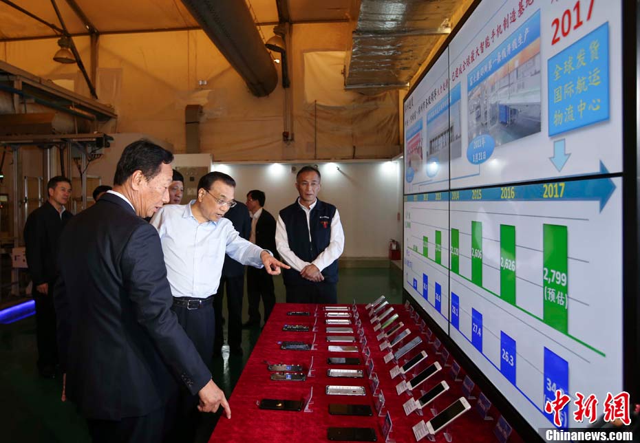 5月8日至9日,中共中央政治局常委、國務(wù)院總理李克強在河南省委書記謝伏瞻、省長陳潤兒陪同下,在開封、新鄉(xiāng)、鄭州考察。圖為5月9日,李克強考察鄭州富士康科技園。中新社記者 劉震 攝