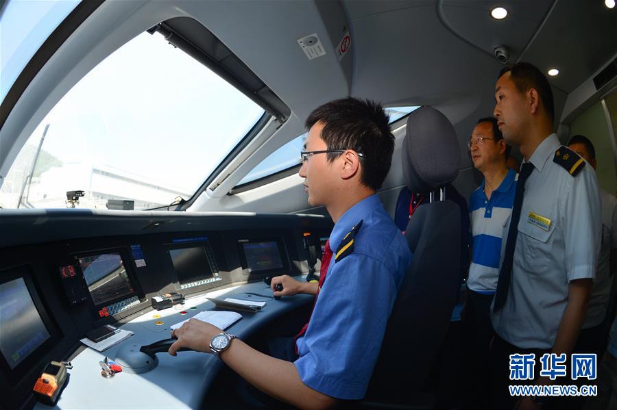 技術(shù)人員在寶蘭高鐵高速綜合檢測列車司機室作業(yè)(5月16日攝)。